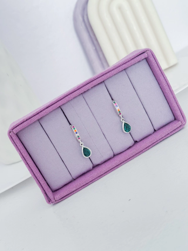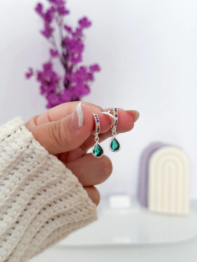 Argolinha colorida cravejada gota verde