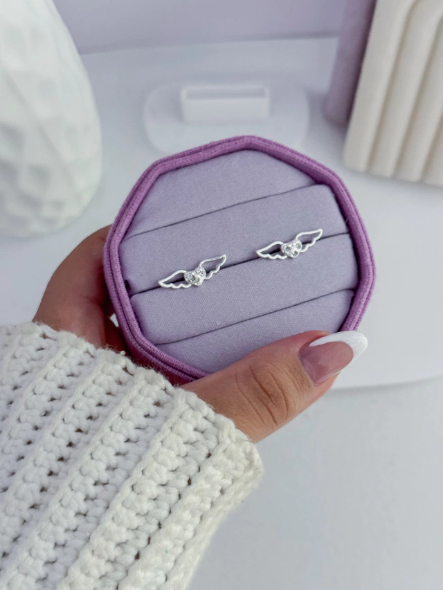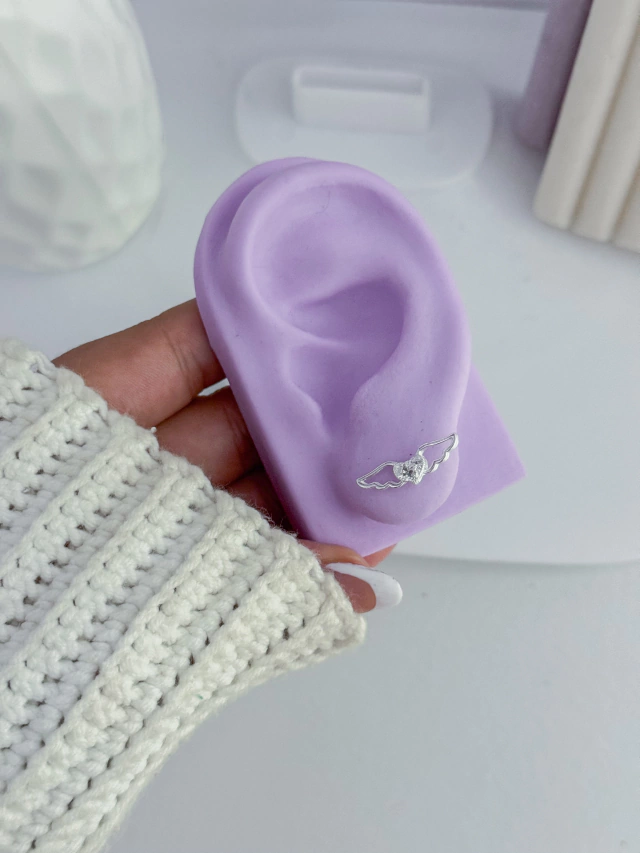 Brinco asa coração cravejado