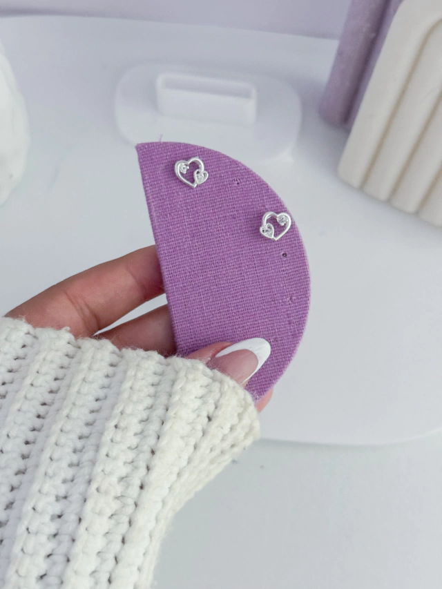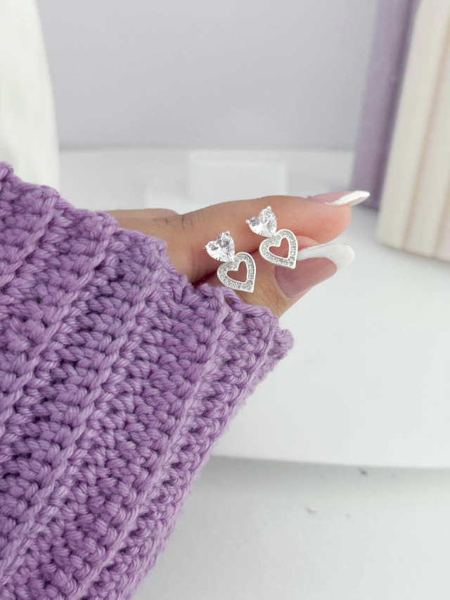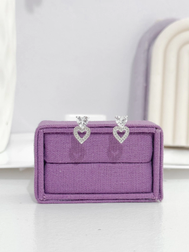 Brinco coração duplo cravejado