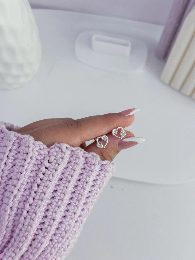 Brinco coração cravejado
