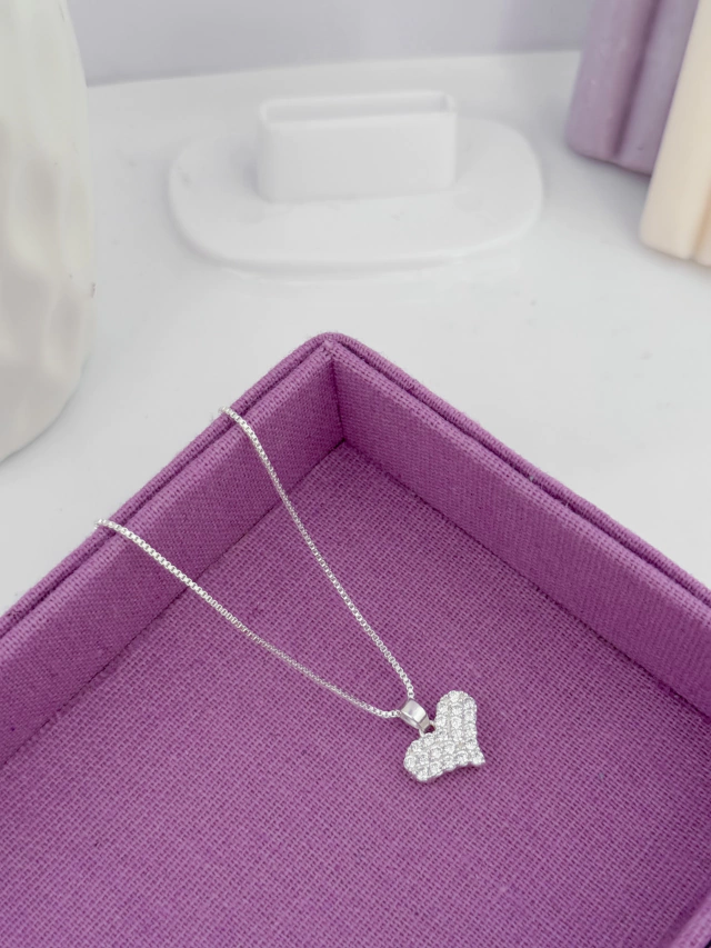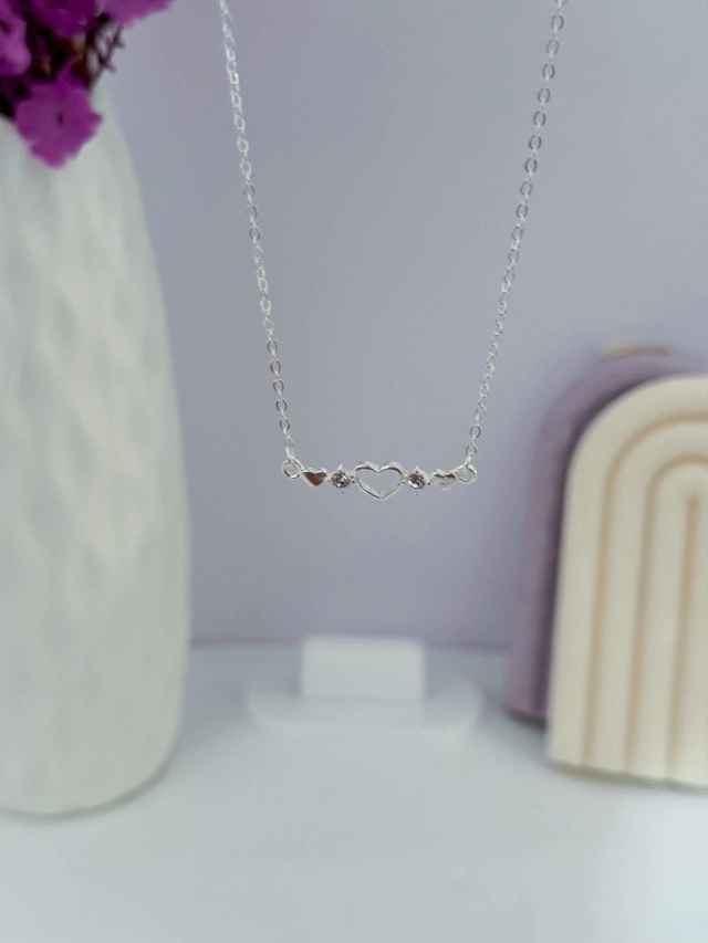Colar coração vazado 2 zircônias