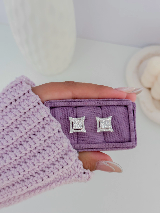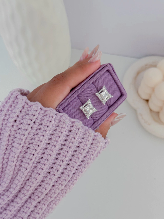 Brinco quadrado zircônia